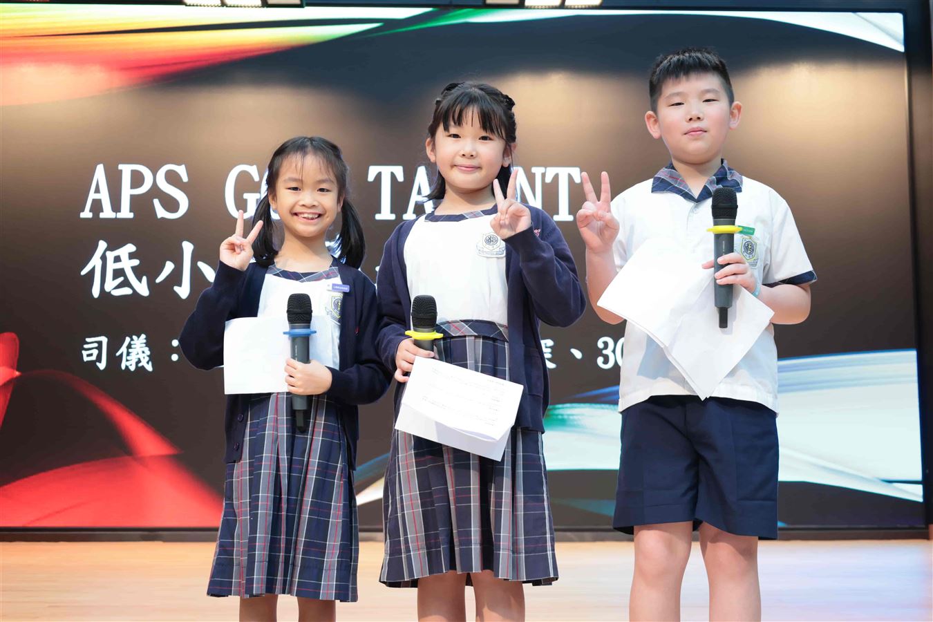 本校每年舉辦才藝表演,讓學生發揮所長,鼓勵學生與人分享課外活動及自學興趣的學習成果。近年才藝表演以「APS’s Got Talent」為主題,鼓勵同學發揮潛能,建立自信心。同學們踴躍參與。表演內容涵蓋不同的範疇,有演奏樂器、唱歌、舞蹈、跆拳道及講故事等等,十分豐富!